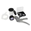 Diese hochwertige Unterdruck Prüfpumpe bzw. Vakuumpumpe von Buzzetti ist aus Aluminium und Stahl gefertigt, was eine lange Lebensdauer gewährleistet. Ideal zur Dichtheitsprüfung von diversen Systemen. Geliefert wird sie mit einem Expansionsgefäss und zahlreichen Adaptern und Schläuchen, welches die Pumpe auch z. B. zum Entlüften von Bremssystemen einsetzten lässt.