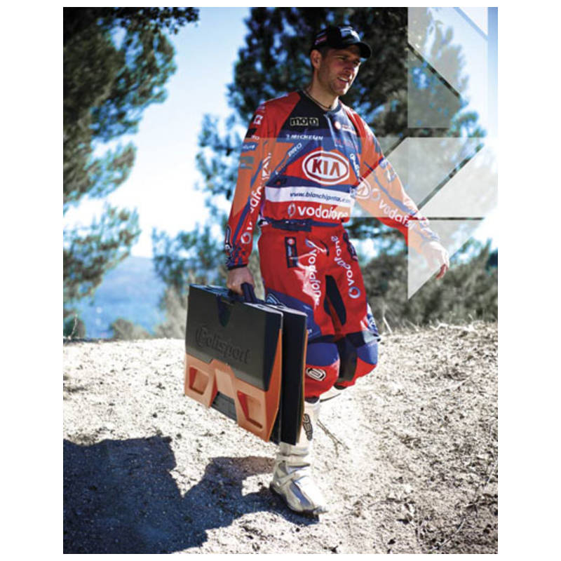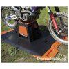 Faltbare, FIM konforme Unterlage für das Motorrad mit integrierter, austauschbarer Öl-Auffangwanne, die bis zu 1 Liter fasst (3 Stück im Lieferumfang enthalten). Aus hochfestem Kunststoff, ohne Werkzeug aufzubauen. Pre-Cut in der Mitte für optimalen Halt des Ständers (passt für alle handelsüblichen MX-Ständer). Mit Ablagen für Werkzeug und Schrauben, einfach zu reinigen.