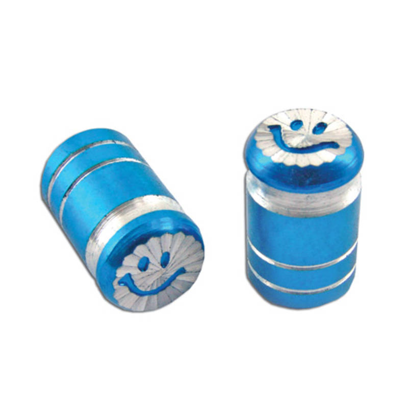 Ventilkappen TNT Smile blau eloxiert/chrom