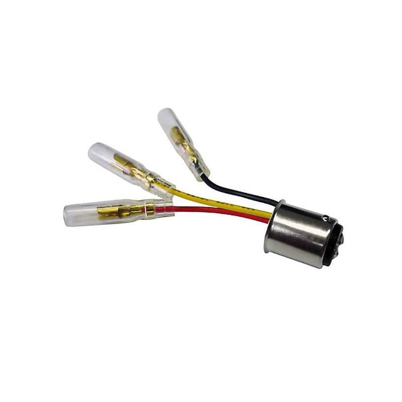Verbindungskabel *NN PRODUCTS* TYP2 für Motorrad Rücklicht, 3 Kabel mit Rundsteckhülsen zu Birnenfassung (BAY15D)
