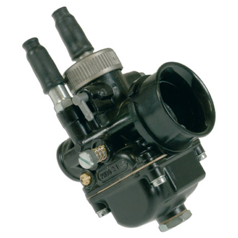 Vergaser Dellorto 19mm BE: Ab sofort liefern wir euch von Stage6 die bekannten und bewährten Racing Vergaser von Dellorto. Das auffälligste der neuen Dellorto 19mm Racingvergaser vom Typ PHBG ist mit Sicherheit die schwarze Farbe. Neu ist die metallische Schwimmerkammer mit einer zentralen Schraube zum einfachen wechseln der Hauptdüse, wie man es schon von den Arreche Vergasern her kennt. Ein Drehverschluss sitzt nun auf dem Schieberturm um ein leichtes wechseln oder umhängen der Nadel vorzunehmen ohne den Vergaser aus dem ganzen Ansaugstutzen nehmen zu müssen. Durch die neue Bedüsung wurde ein weiters Problem, das überfetten beseitigt. Mit Öl und Unterdruckanschluss ist der Vergaser auch bestens für den Alltagsgebrauch ausgestattet. Leistungsmäßig identisch mit dem Vorgänger, jedoch mit vielen neuen praktischen Kleinigkeiten versehen. Verbaut werden 5mm Hauptdüsen. Hauptdüse: 75, Nebendüse: 45, Nadel: W9. Alle Ersatzteile für diesen Vergaser finden Sie unter Kompletter Katalog/Vergaser Ersatzteile/Dellorto PHBG. Je nach Modell passenden Ansaugstutzen auswählen und mitbestellen !