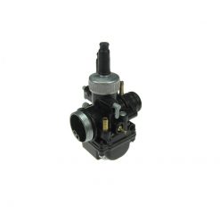 Vergaser Dellorto 21mm BE: Ab sofort liefern wir euch von Stage6 die bekannten und bewährten Racing Vergaser von Dellorto. Das auffälligste der neuen Dellorto 21mm Racingvergaser vom Typ PHBG ist mit Sicherheit die schwarze Farbe. Neu ist die metallische Schwimmerkammer mit einer zentralen Schraube zum einfachen wechseln der Hauptdüse, wie man es schon von den Arreche Vergasern her kennt. Ein Drehverschluss sitzt nun auf dem Schieberturm um ein leichtes wechseln oder umhängen der Nadel vorzunehmen ohne den Vergaser aus dem ganzen Ansaugstutzen nehmen zu müssen. Durch die neue Bedüsung wurde ein weiters Problem, das überfetten beseitigt. Mit Öl und Unterdruckanschluss ist der Vergaser auch bestens für den Alltagsgebrauch ausgestattet. Leistungsmäßig identisch mit dem Vorgänger, jedoch mit vielen neuen praktischen Kleinigkeiten versehen. Einen Vergleich auf dem Prüfstand könnt ihr hier sehen. Verbaut werden 5mm Hauptdüsen.