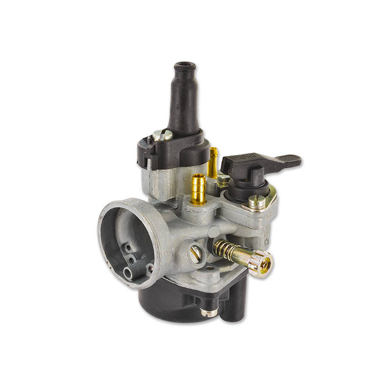 Originaler Dellorto Vergaser PHVA mit 17.5mm Durchlass, der Vergaser wird mit einem Choke sowie einem Anschluss für den Kraftstoff, Oel und Unterdruck geliefert.