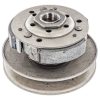 Komplett vormontierte hintere Wandlereinheit bestehend aus Torquedriver, Gegendruckfeder und Kupplung. Dieses Bauteil ist die häufigste Ursache für gerissene Keilriemen. Ein defekt des Wandlers macht sich oftmals vorab durch brummen im Fahrbetrieb oder ruckeln beim Anfahren bemerkbar. Der Wandler muss nur noch auf die Getriebeingangswelle aufgesteckt werden, die komplizierte Montage der Gegendruckfeder entfällt. Es handelt sich um ein Ersatzteil in standard Qualität, nicht für getunte Motoren geeignet.