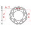 Aluminium-Zahnkranz mit 415er Kettenteilung (Mofa und GP 125). Dieser Zahnkranz muss auf die jeweilige Nabe angepasst werden. Das Loch in der Mitte hat einen Durchmesser von 35mm, was die Anpassung auf nahezu jede Nabe ermöglicht.