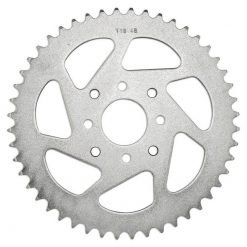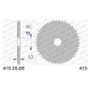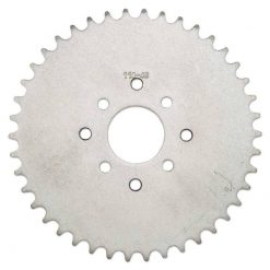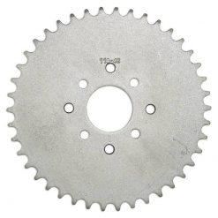 Aluminium-Zahnkranz mit 415er Kettenteilung (Mofa und GP 125). Dieser Zahnkranz muss auf die jeweilige Nabe angepasst werden. Das Loch in der Mitte hat einen Durchmesser von 35mm, was die Anpassung auf nahezu jede Nabe ermöglicht.