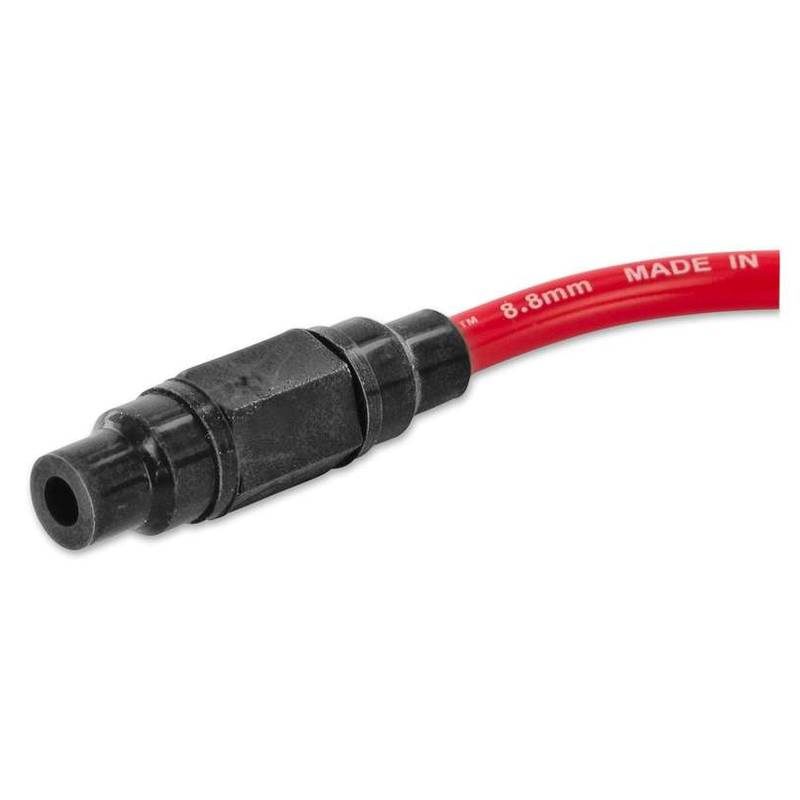 Zündkabel mit 8.8mm Aussendurchmesser inkl. Kerzenstecker. Mit dem mitgelieferten Verbindungsstück kann dieser Stecker problemlos mit einem anderen Zündkabel verbunden werden.