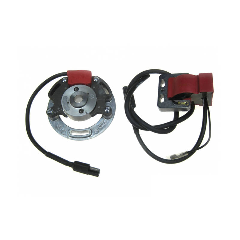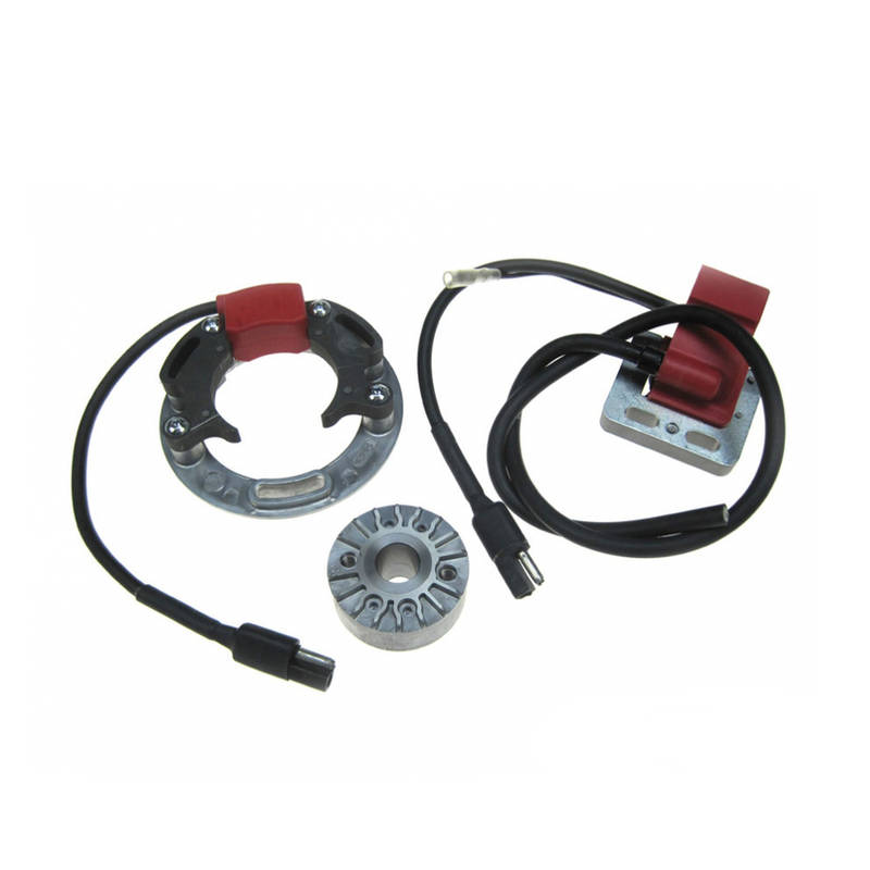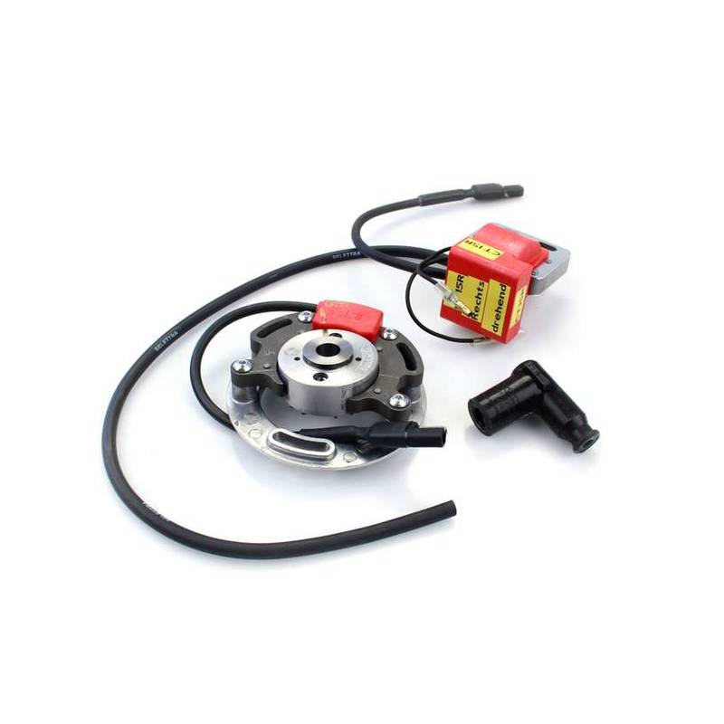 Im Vergleich zu herkömmlichen Zündanlagen ist die Innenrotor Zündung durch die geringe Rotor-Schwungmasse von 200gr deutlich agiler und der Motor kommt schneller zu hohen Drehzahlen und zudem macht sich die Zündverstellung in der Leistungsentfaltung deutlich bemerkbar.