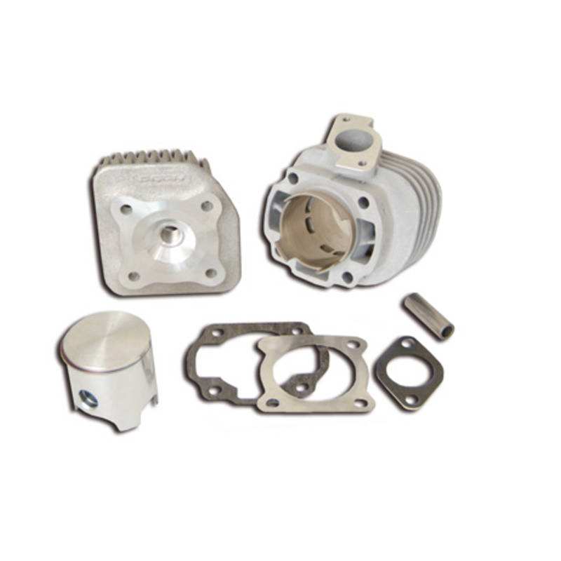 Die Replica Version des High End Zylinders Hebo Manston. Der Alu Zylinder besitzt ebenfalls einen geteilten Auslass und bei den wassergekühlten Modellen einen modularen Zylinderkopf. Die Leistung des Replica setzt ein gutes Stück früher ein, was für etwas mehr Drehmoment aber dafür nicht ganz so hohe Leistung sorgt. Die Verarbeitung ist eine Augenweide. Sehr sauber gearbeitete Kanäle und Überströmfenster.