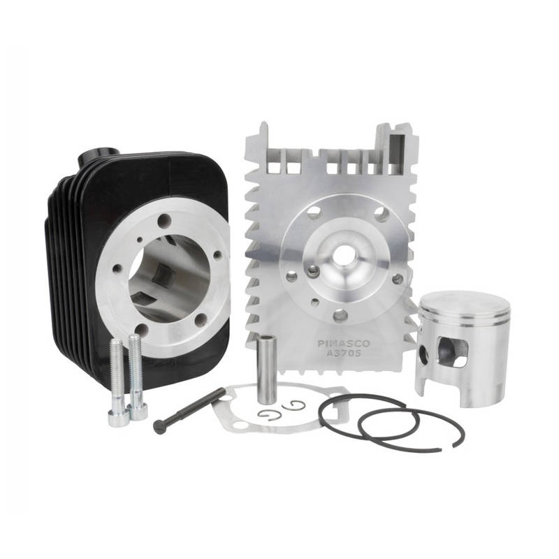 High End Aluminium Zylinder mit 75ccm und passendem Zylinderkopf. Dieser Rennsatz hat eine 5- Punkte Verschraubung welche für Kompressionsverhältnisse von 13:1 sorgen.