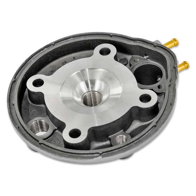Zylinderkopf 40mm (40.3mm) Polini Minarelli AM6 welcher nur für den Polini-Zylinder 045810 verwendet werden kann, da der innere O-Ring in der Zylinderdichtfläche sitzt und nicht wie beim Original-Zylinderkopf eine Rille in der Dichtfläche des Kopfs eingearbeitet ist. Er verfügt über Anschlüsse für die Vergaserheizung sowie alle anderen nötigen Details.